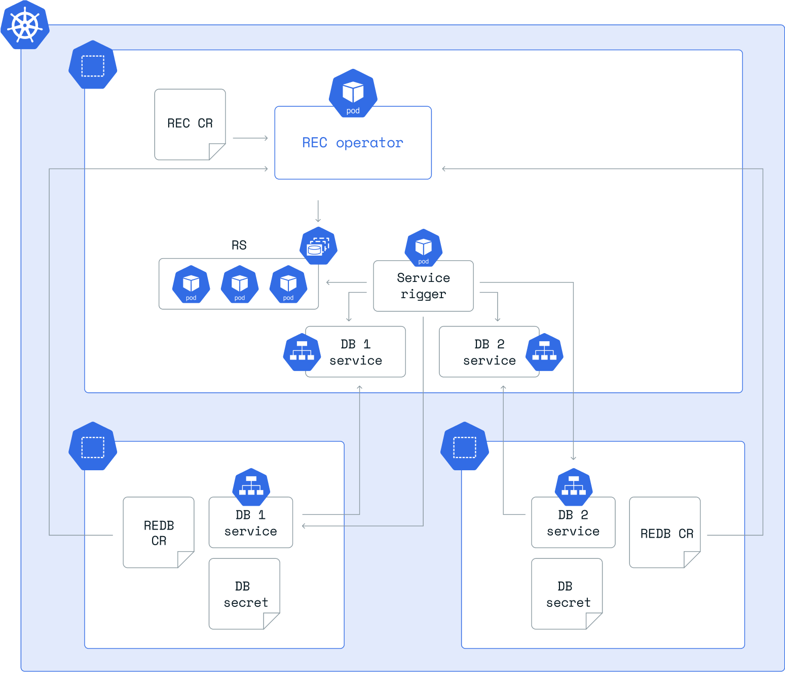 Redis Enterprise for Kubernetes allows you to deploy to multiple namespaces. This article describes flexible deployment options you can use to meet your specific needs.