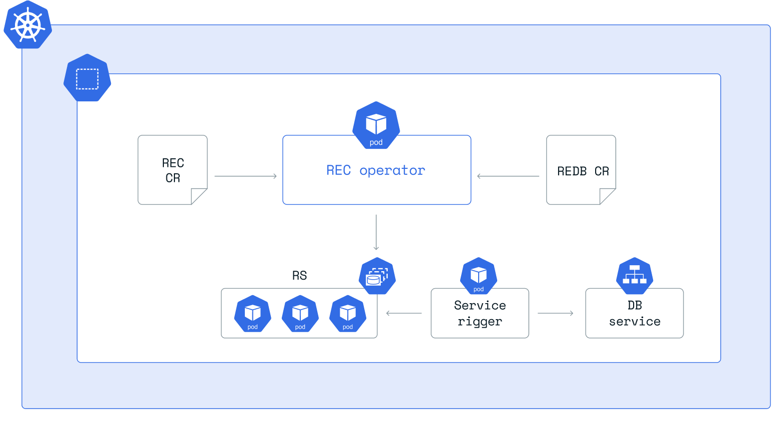 A single Kubernetes cluster can contain multiple Redis Enterprise clusters (REC), as long as they reside in different namespaces. Each namespace can host only one REC and each operator can only manage one REC.