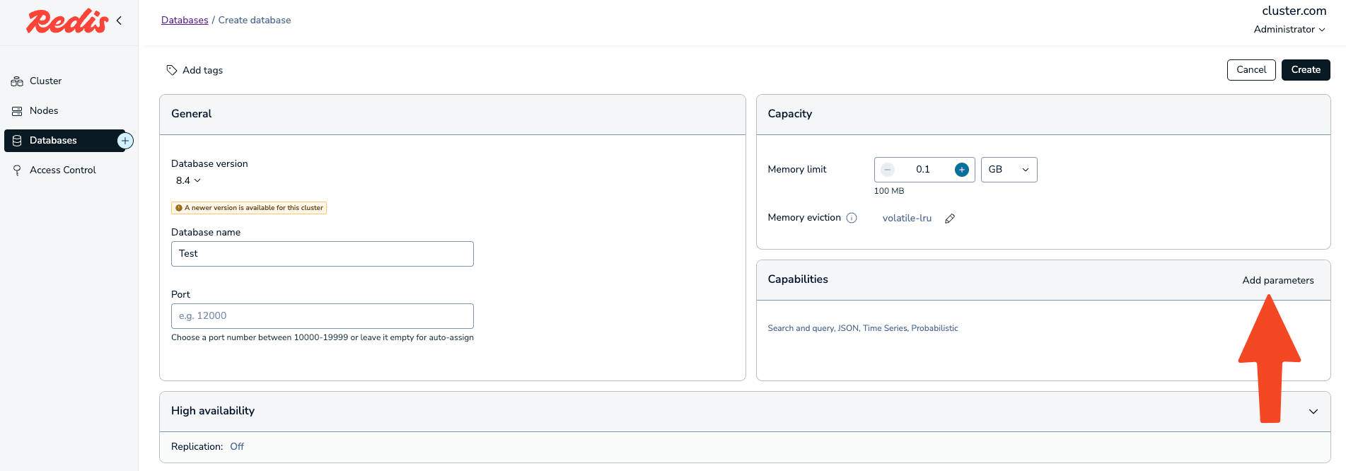If you do not have a cluster that supports Redis Search, install Redis Software version 7.4.2-54 or later on a new cluster, or upgrade an existing cluster.
