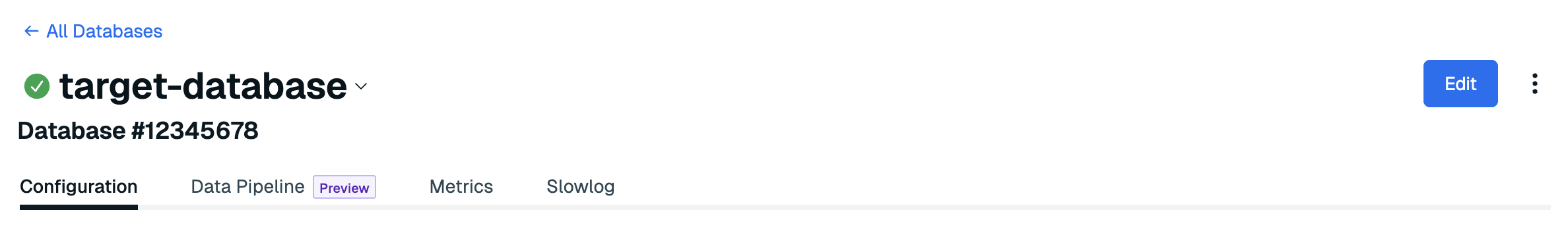 From the Configuration tab of the target database, select Edit.