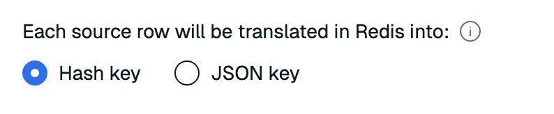 Select the Redis data type to write keys to the target. You can choose Hash key or JSON key if the target database supports JSON.