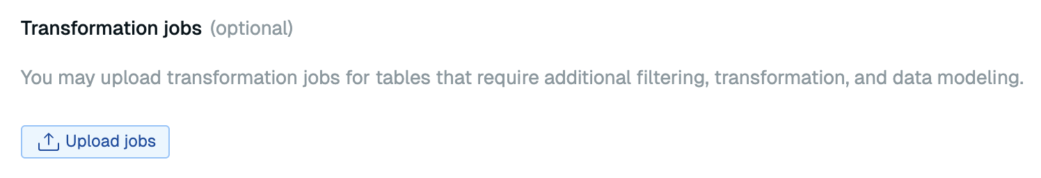 You can also supply one or more transformation job files that specify how you want to transform the captured data before writing it to the target. Select Upload jobs to upload your job files.