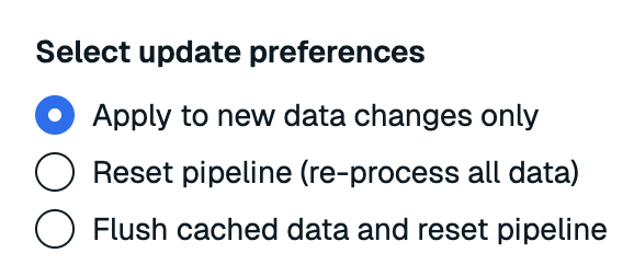 - Reset pipeline (re-process all data): The data pipeline will re-ingest all of the selected data.