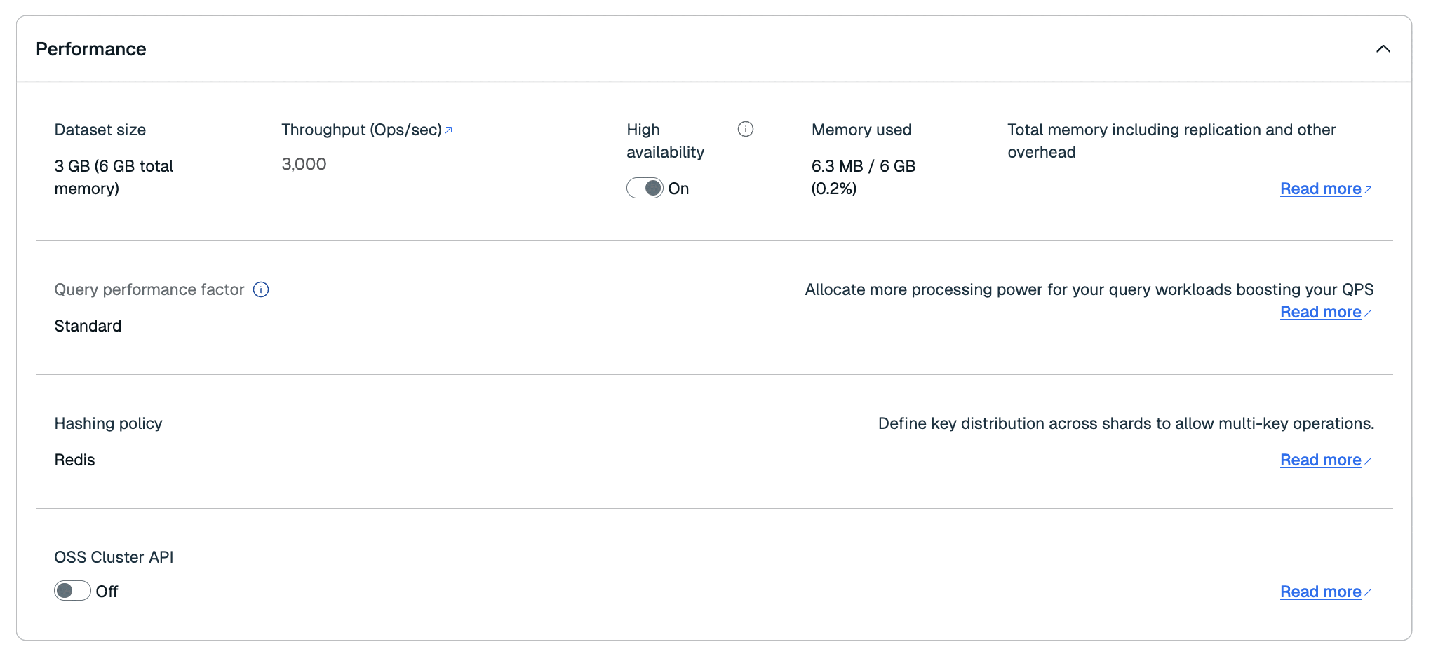 | Data eviction policy | Configures which policy is applied when your database reaches its memory limit |