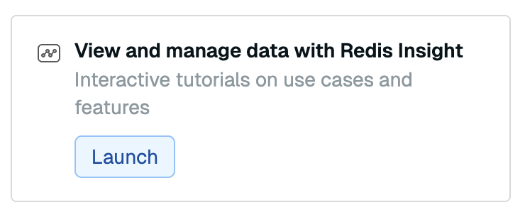 You can also select Launch from the database page under View and manage data with Redis Insight to open Redis Insight in your browser.