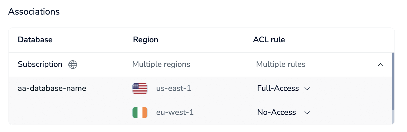 For Active-Active databases, you can define roles with different levels of access for different regions. For example, you can define a user role with full database access in one region and read-only access in another. Or, you can prevent a user from running any commands in a specified region.
