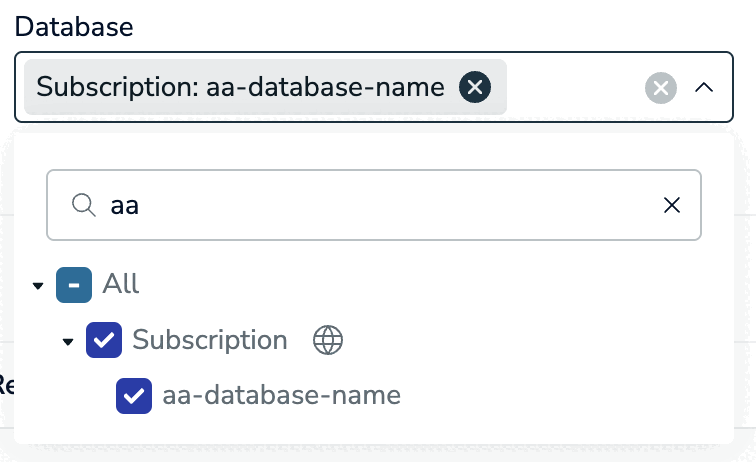 3. Select one or more Active-Active databases from the Databases list. Active-Active databases are marked with a globe icon.