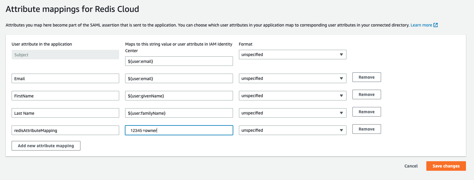 Step 3: Finish SAML configuration in AWS IAM Identity Center's Redis Cloud Application