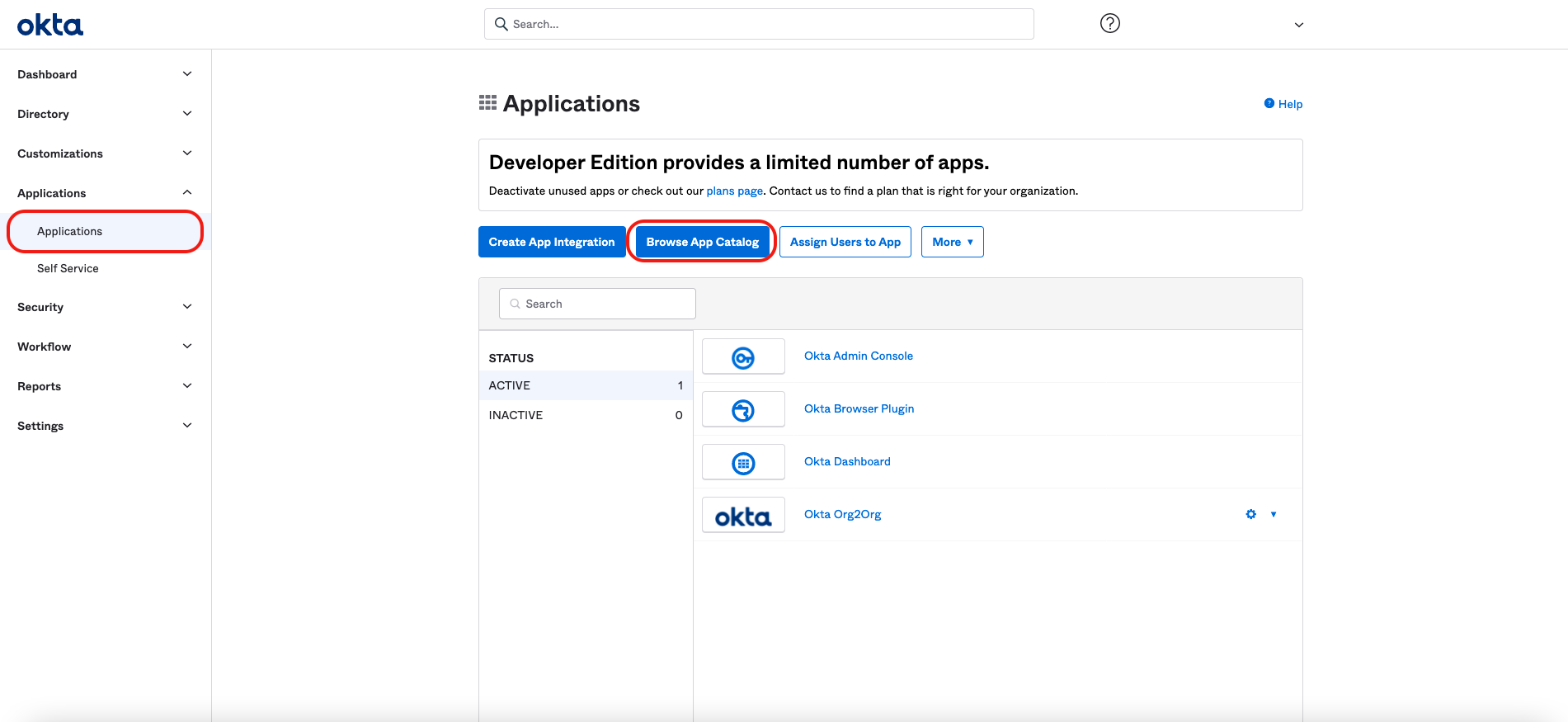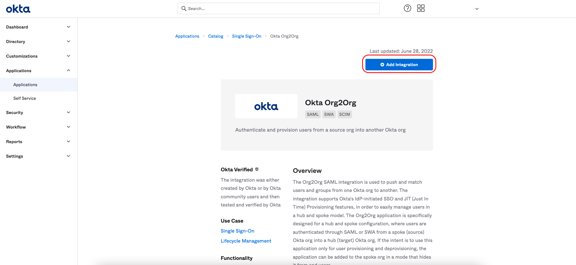Locate and select Okta Org2Org.
