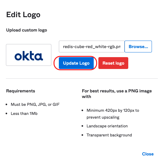 Add a Redis Cloud icon to the application because it's easier for users to identify the application. Select the pencil icon on the application logo and upload a Redis image using these steps: