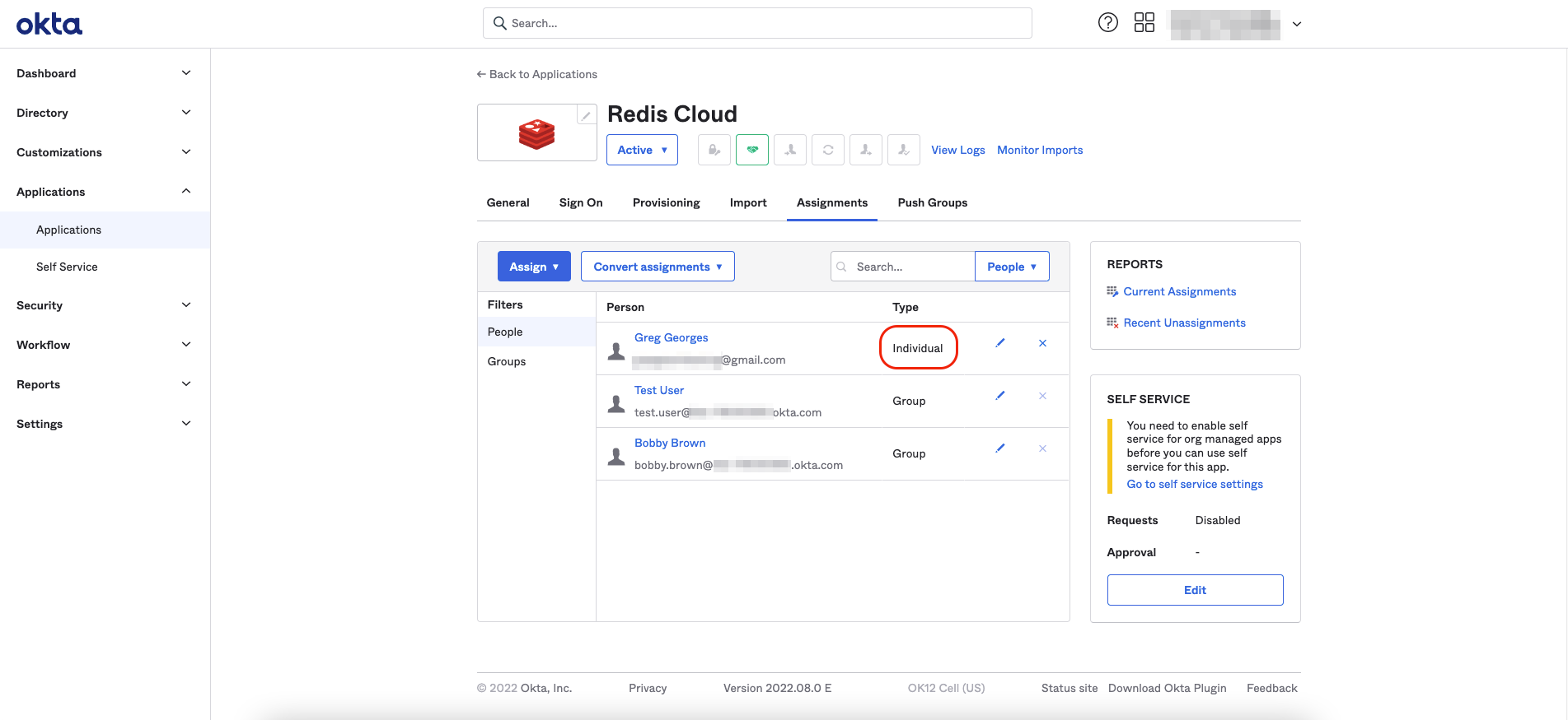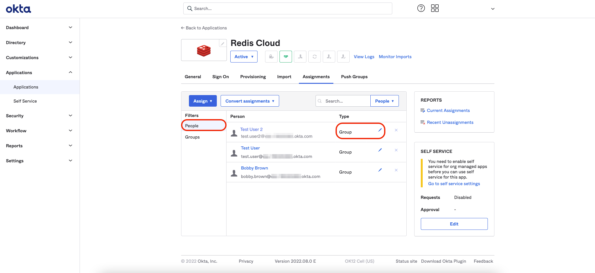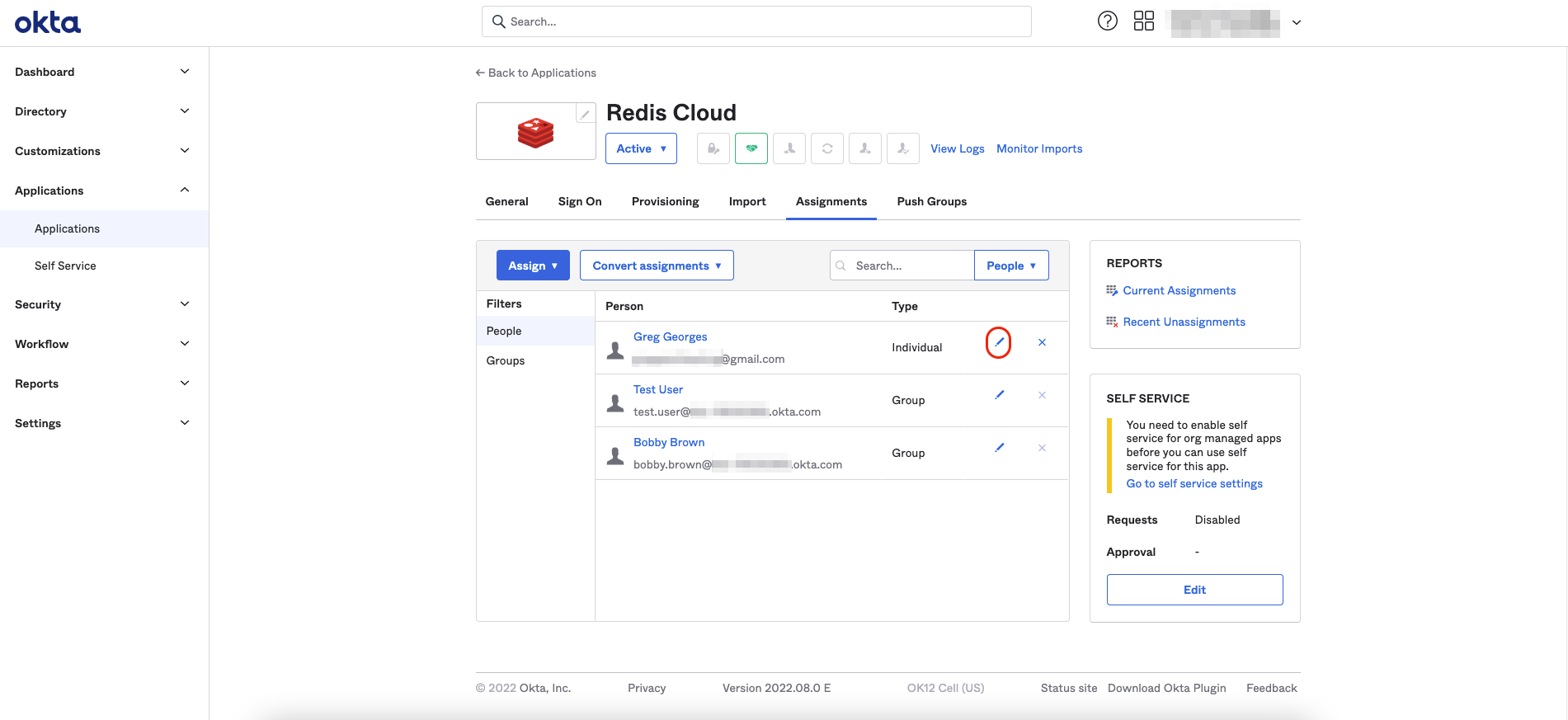 From the menu, select Applications > Applications > Redis Cloud. Then, select Assign to groups.