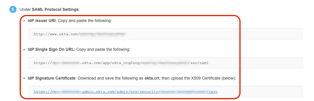 Once you capture the information, close the window, return to the Okta admin console, and select Done.
