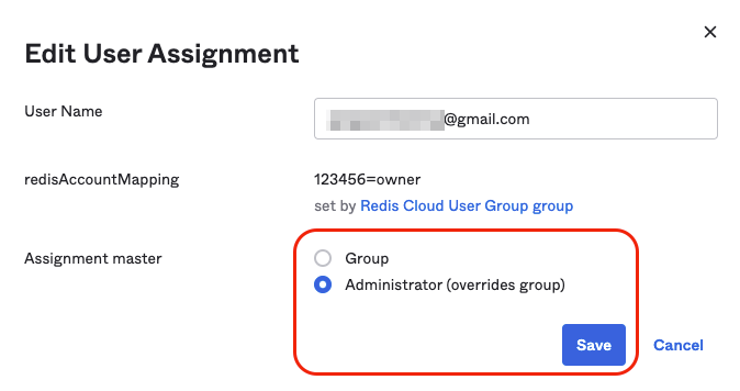 In the Redis Cloud User Group, select Assign.
