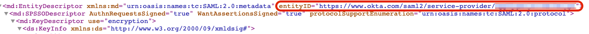 - EntityID: Unique name of the service provider (SP)