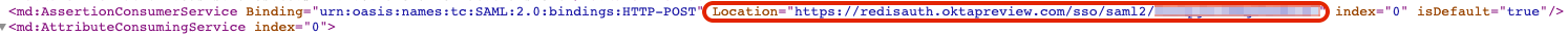 <ID> so it matches the AssertionConsumerService Location URL ID (the content after the last forward slash "/"). To learn more about configuring service provider applications, see your identity provider's documentation.Return to Redis Cloud console
