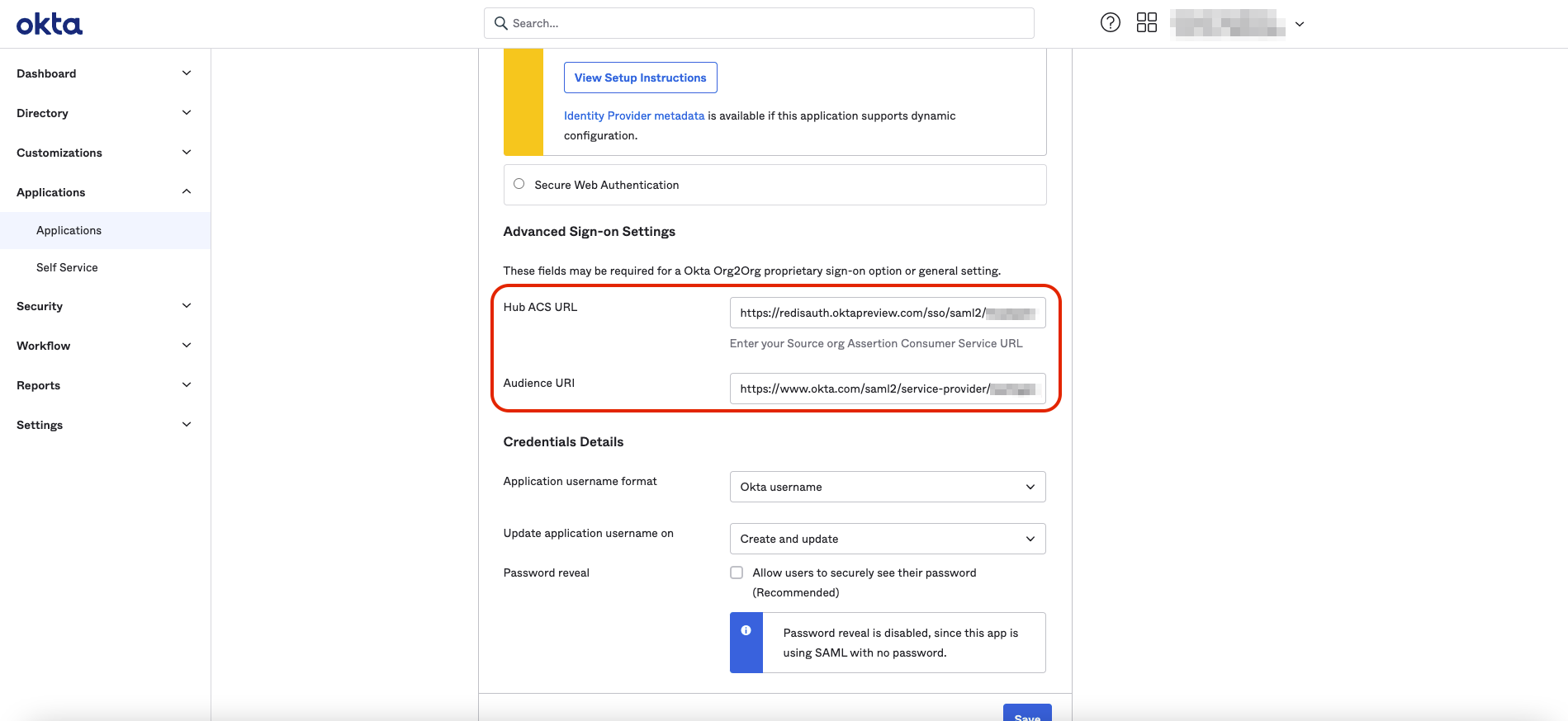 Return to Okta, select Applications > Redis Cloud > General, then select Edit.