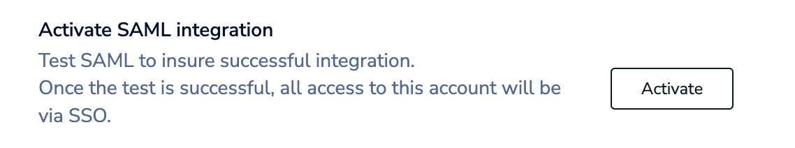 To activate SAML, you must have a local user (or social sign-on user) with the owner role. If you have the correct permissions, the Single Sign-On tab is enabled.