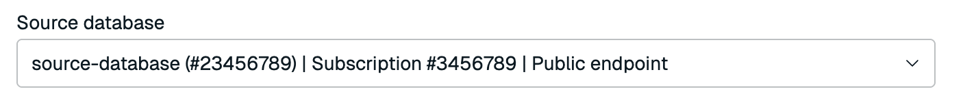 Select your Redis Cloud Essentials database from the Source database list. This will be your source database. You can type in the database's name to find it.