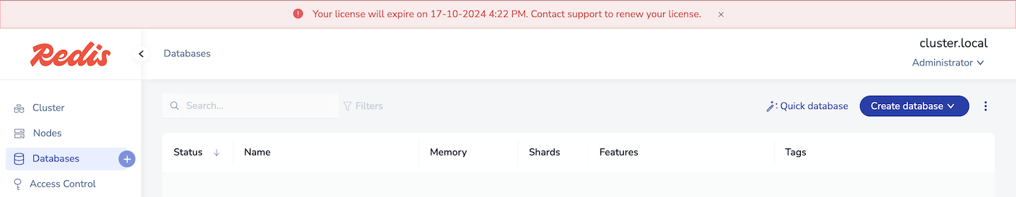 The cluster license key enables Redis Software features and determines shard usage and limits. You can add or update a cluster key at any time.