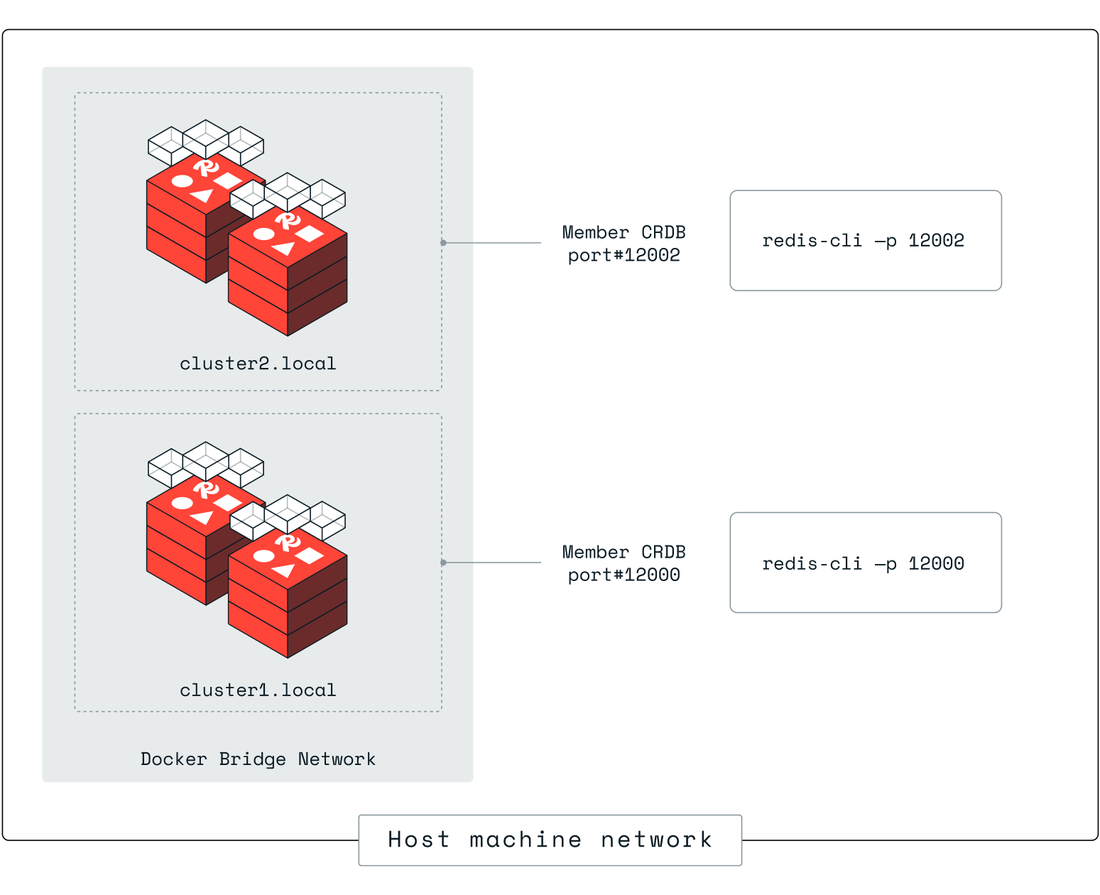To use redis-cli on port 12000 from the node 1 terminal, run: