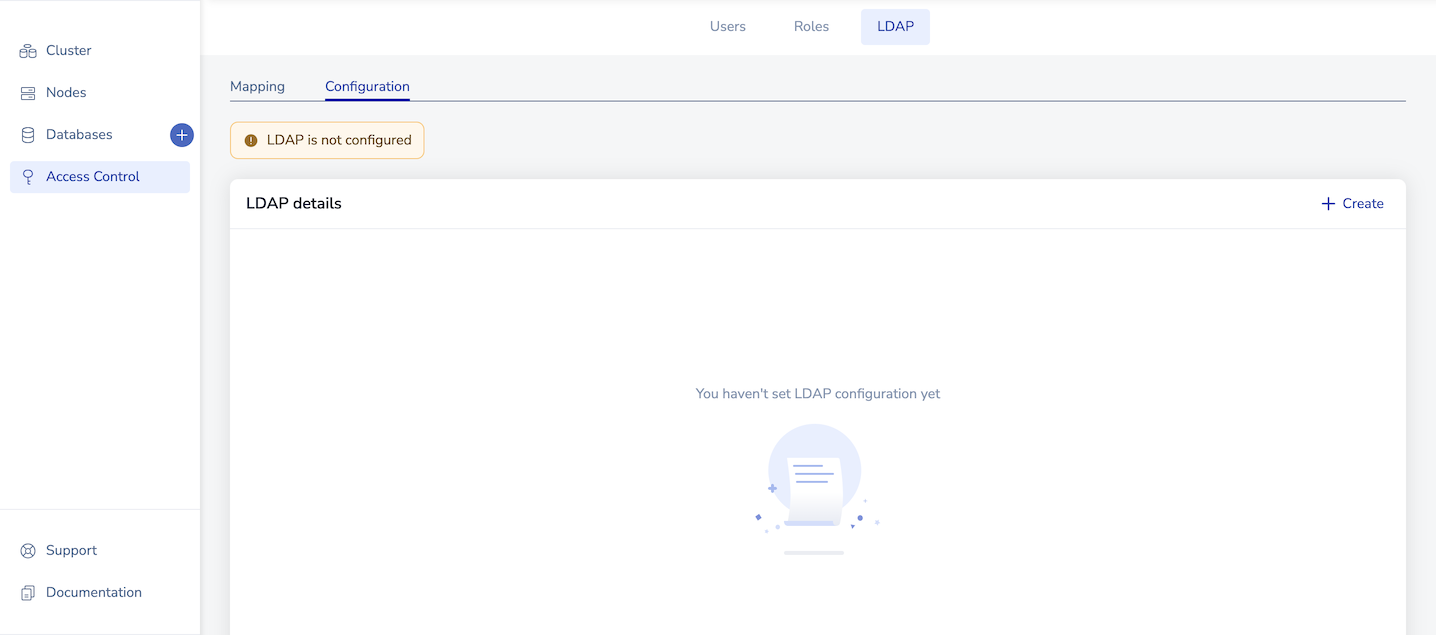 From Access Control > LDAP in the Cluster Manager UI, select the Configuration tab and enable LDAP access.
