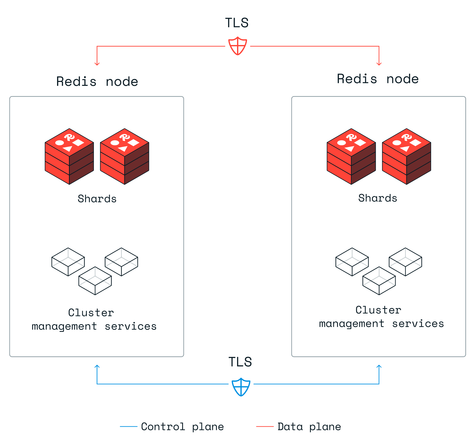 As of v6.2.4, Redis Software supports internode encryption, which encrypts internal communication between nodes. This improves the security of data as it travels within a cluster.